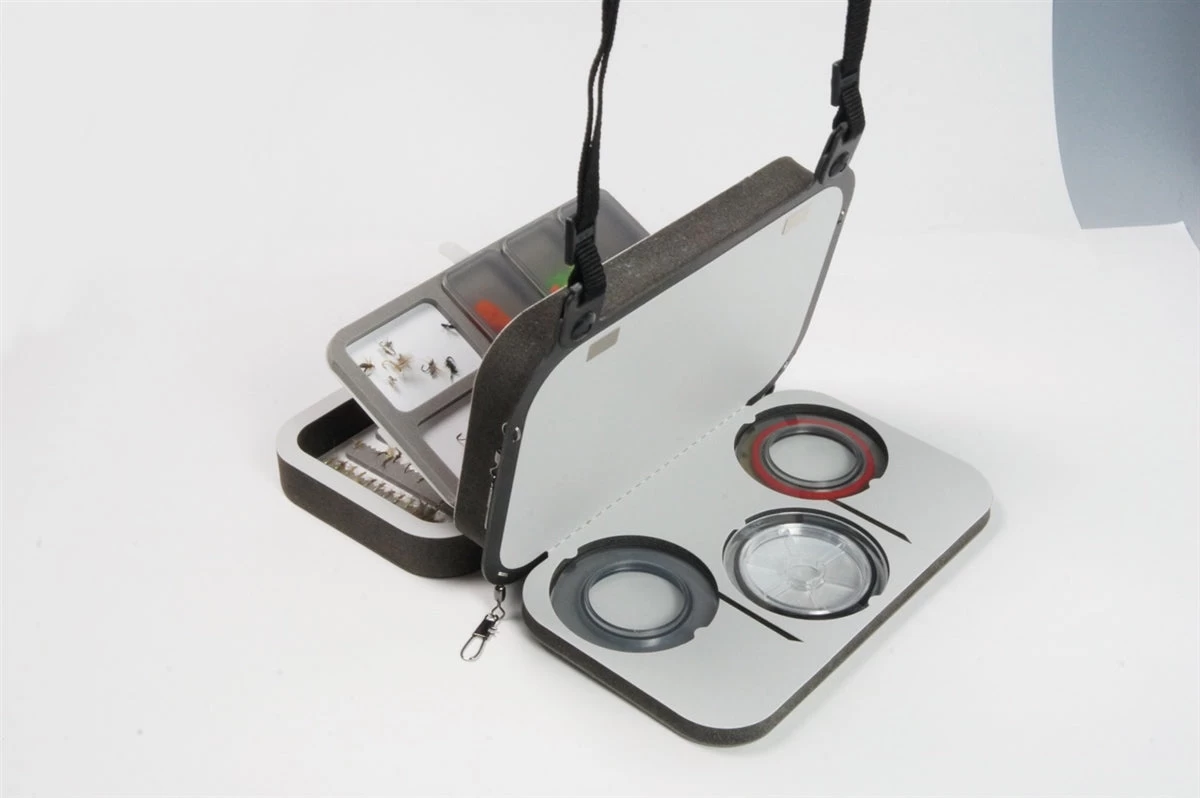 - Backside of box takes 3 tippet spools for storage and easy access