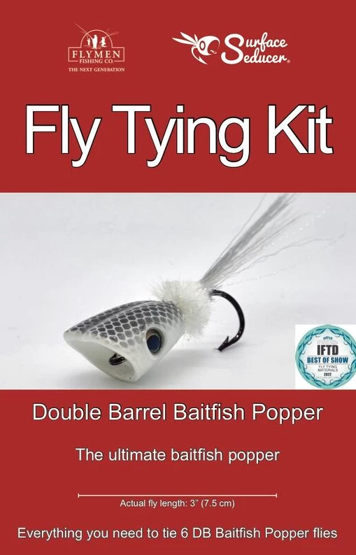 Hammer a wide range of freshwater and saltwater species witht he Double Barrel Baitfish Popper. This universal, highly effective popper imitates a typical baitfish being pursued (and eaten) by your favorite predatory gamefish such as striped bass, redfish, GT’s, false albacore, pike, peacock bass , small & largemouth bass. Tied with the award-winning Surface Seducer Baitfish Head and the ultra-realistic Fish-Skull Living Eyes which act as an important trigger for gamefish.