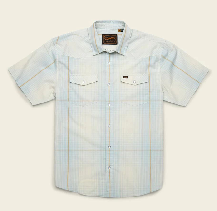 Our H Bar B Snapshirt is a runaway hit and perennial best seller because of its pearl snap bounty and timeless western design. The H Bar B is right at home on any range from Austin to Auckland. Made of a quick drying cotton-poly blend with pearlized snaps and shirt tail hem.