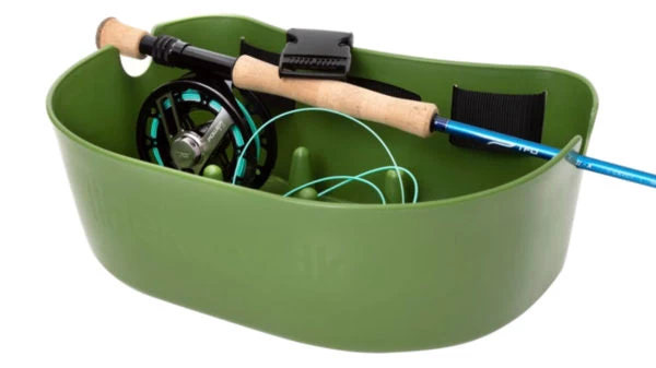 The rugged, hard plastic shell is safe for use in all climates. The muted green color of the basket will keep any angler undercover while stalking spooky fish. It features an adjustable belt for anglers of all shapes and sizes and the built-in rod saddle feature accommodates easy storage of a wading staff or fishing rod. The LineKurv stripping basket comes with a two-year warranty.