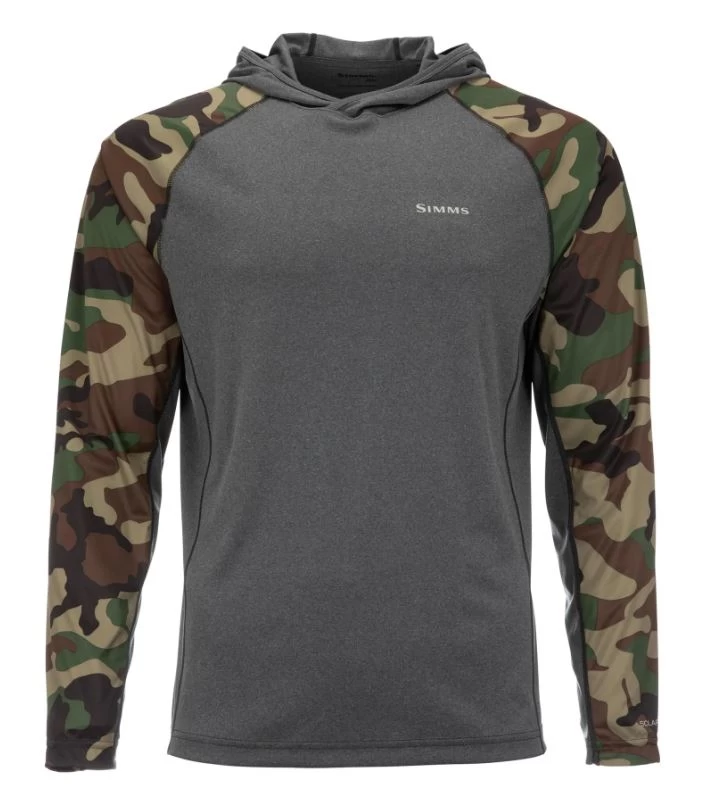 When the sweltering sun threatens to end a long afternoon of tossing carefree casts, cover yourself with the Simms SolarFlex® Hoody – Print. The quick-drying comfort and UPF 50 sun protection of lightweight COR3â„¢ fabric lets you keep chasing that elusive 2-footer through the dog days of summer. The durable and flexible sleeve construction supports a range of movement, letting you cast from any angle. The hoodie features a flat-seam finish that creates a plush, next-to-skin feel.