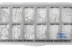 The Nymph/Hopper Lightning Strike Assortment contains 15 each of model NH7 hooks in sizes 6-16 and model NH9 hooks in sizes 8-18.